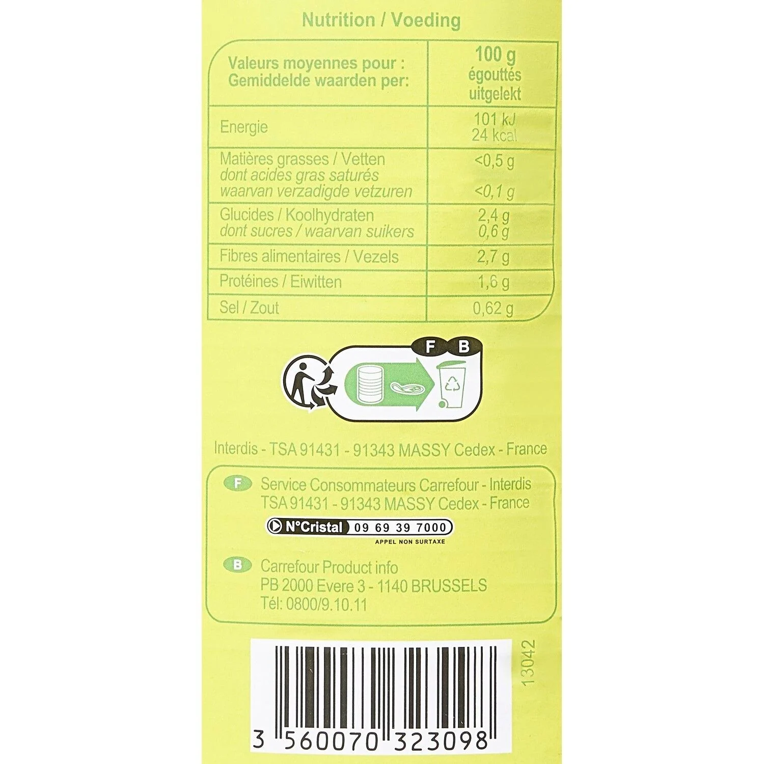 Ingrédients (dont ALLERGÈNES) : Haricots verts très fins, eau, sel.