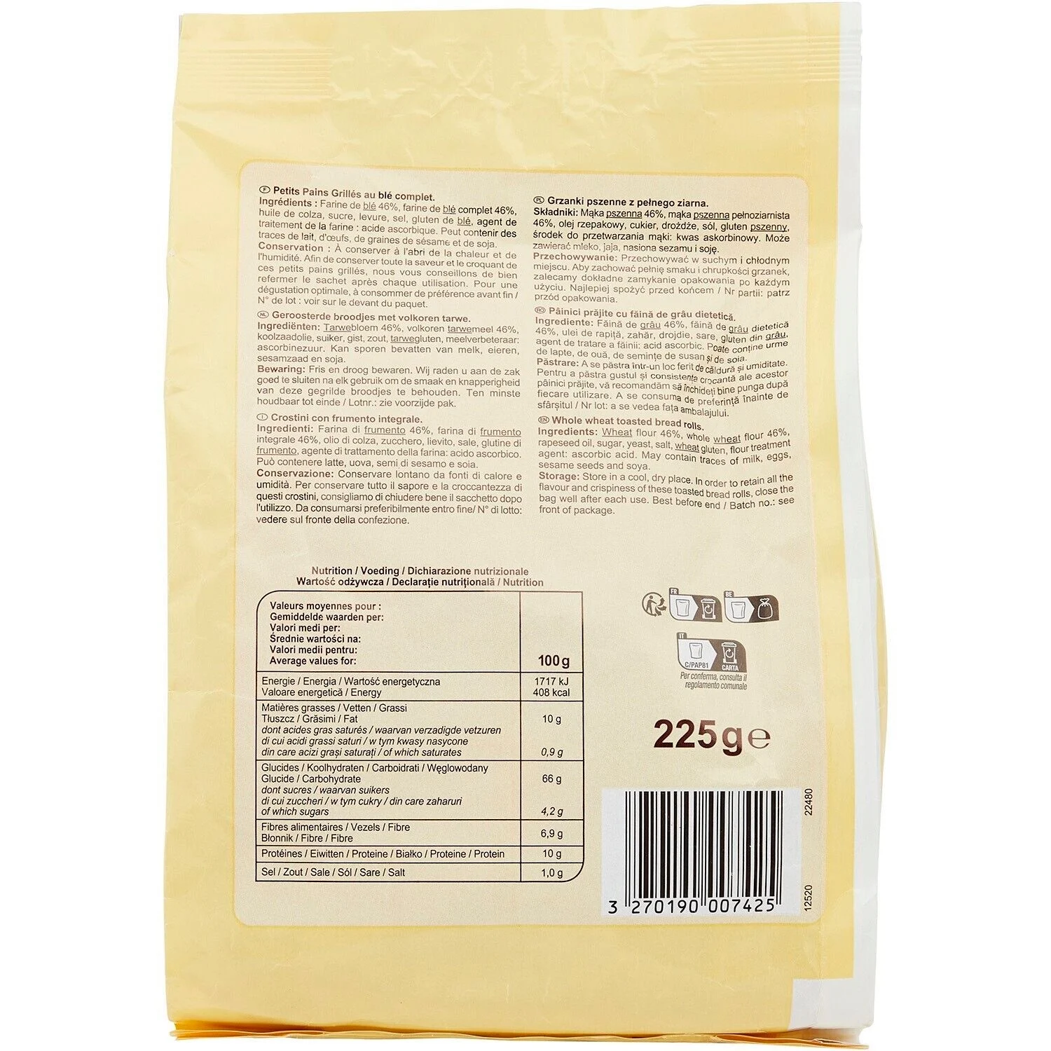 Peut contenir des traces de LAIT, d’ŒUFS, de graines de SESAME et de SOJA.