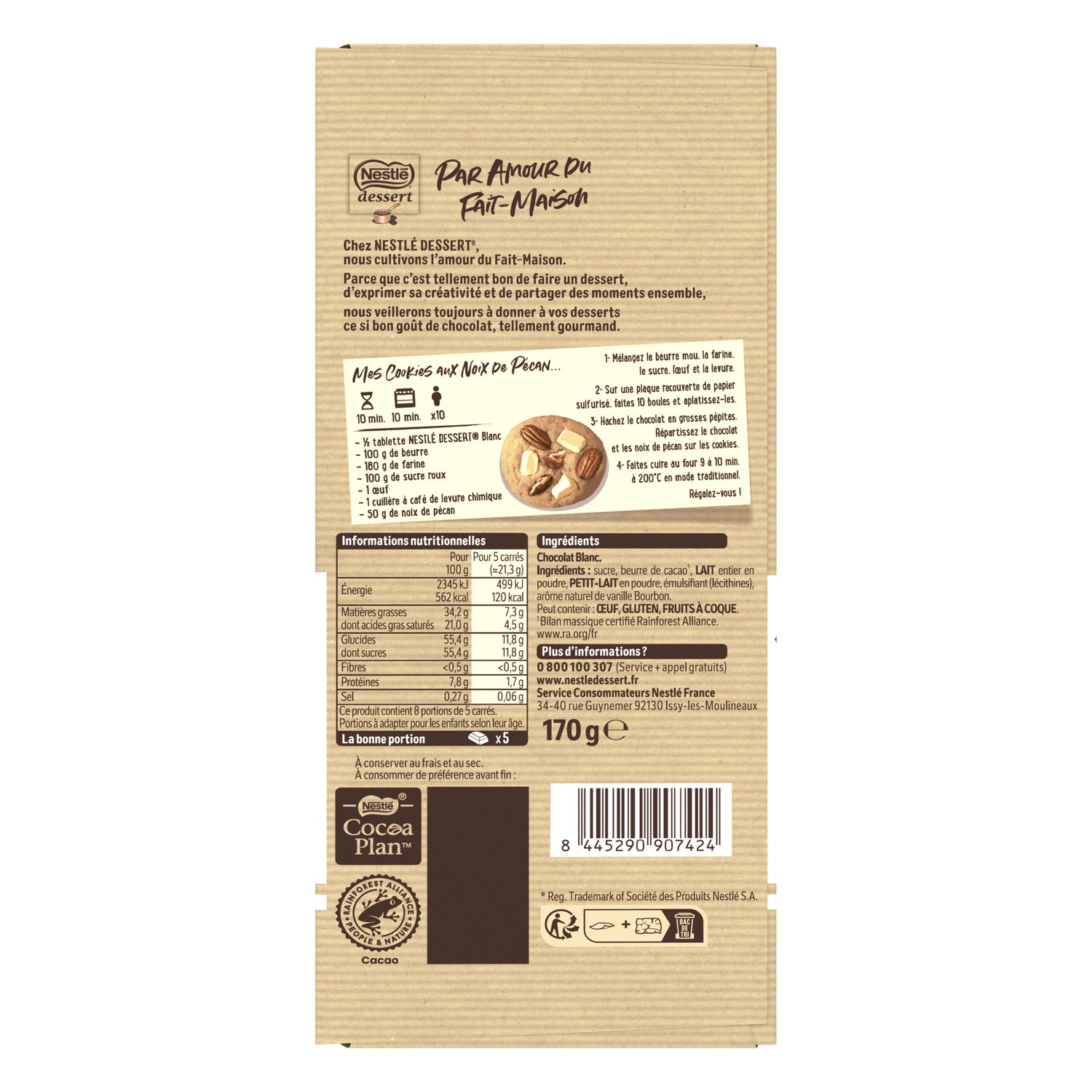 Ingrédients : sucre, beurre de cacao¹, LAIT entier en poudre, PETIT-LAIT en poudre, émulsifiant (lécithines), arôme naturel de vanille Bourbon. Peut contenir : ŒUF, GLUTEN, FRUITS A COQUE. ¹Bilan massique certifié Rainforest Alliance. www.ra.org/fr