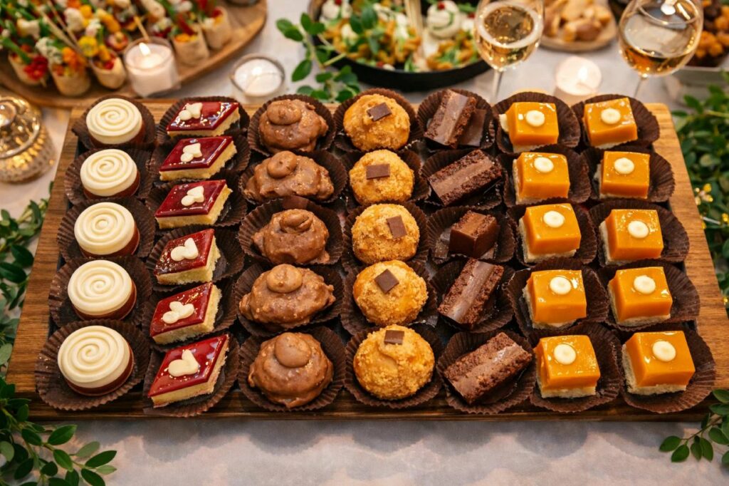 Que ce soit pour une réunion de famille, une soirée entre amis ou un cocktail entre collègues, nous vous proposons un bel assortiment de mignardises faites maison.